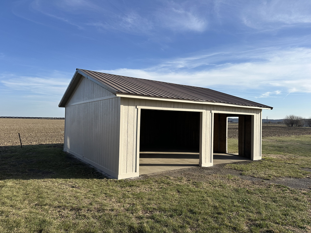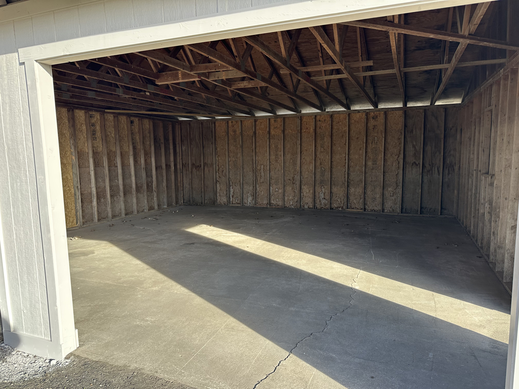 The north 2.5 tract includes a private drive, the 2-stall garage with concrete floor & a nice 12’ x 60’ concrete pad!